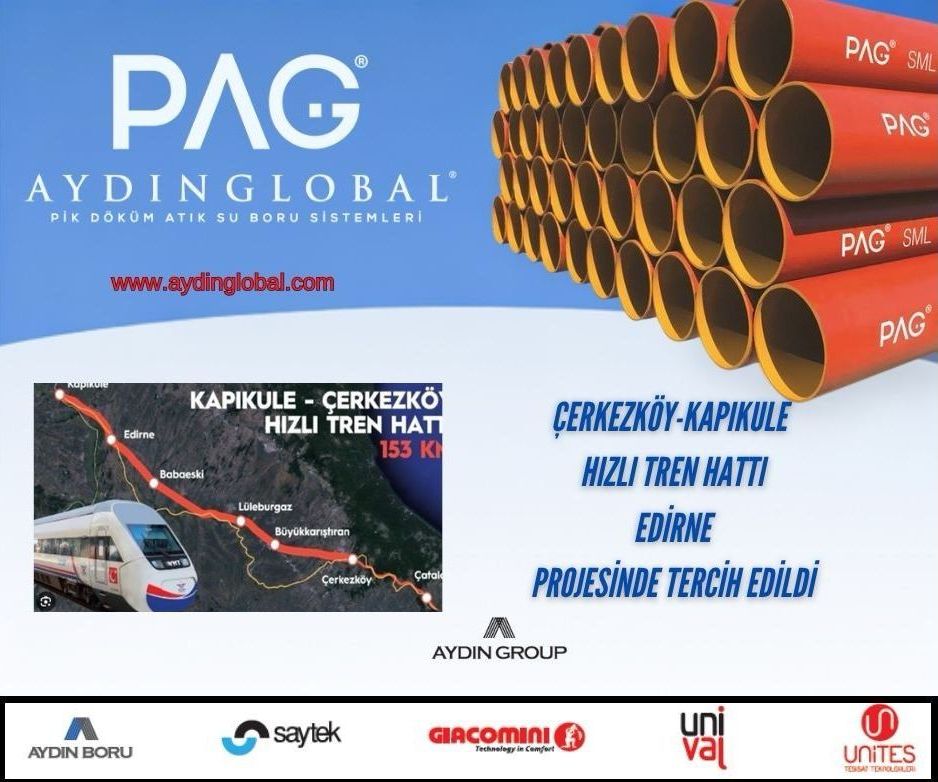 Türkiye’nin ve Avrupa’nın en önemli ulaşım yatırımlarından biri olan Çerkezköy – Kapıkule Hızlı Tren Hattı Projesi kapsamında PAG – Aydın Global ürünleri tercih edilmiştir.