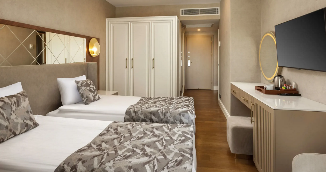 YÜKSEK VERİMLİLİK, DÖRT MEVSİM KONFOROdalarda kullanılan fancoil üniteleri, sessiz çalışma özellikleri ve Eurovent sertifikalı performans garantisi sayesinde konforu ön planda tutarken, misafirlerin kesintisiz bir deneyim yaşamasını sağladı.Büyütmek için resme tıklayınRenovasyon sürecinde Daikin’in geniş ürün portföyünden otelin ihtiyaçlarına en uygun çözümler tercih edildi. Odalarda kullanılan fancoil üniteleri, sessiz çalışma özellikleri ve Eurovent sertifikalı performans garantisi sayesinde konforu ön planda tutarken, misafirlerin kesintisiz bir deneyim yaşamasını sağladı. Genel kullanım alanlarında devreye alınan klima santralleri ise, Daikin’in Sakarya Hendek Üretim Tesisleri’nde üretilerek hem yerli üretim avantajı sundu hem de yüksek temiz hava kalitesiyle misafirlerin sağlığını destekledi. Projede ayrıca inverter kompresörlü su soğutmalı chiller ve yüksek verimli VRV sistemleri entegre edilerek hem enerji tasarrufu hem de uzun vadeli işletme verimliliği elde edildi.