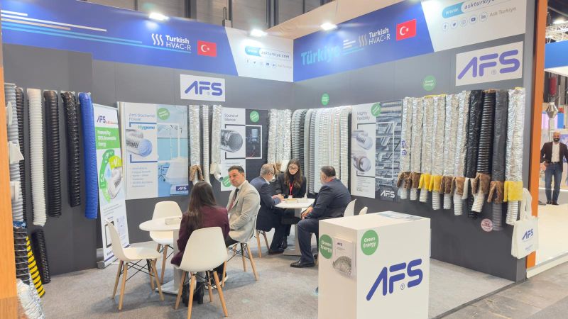 AFS’nin anti-mikrobiyal esnek hava kanalları, iç mekan hava kalitesini artıran özel kaplamasıyla fuarın öne çıkan ürünlerinden biri oldu. Akustik esnek hava kanalları ise enerji verimliliğini koruyarak sessiz bir çalışma ortamı sağlamasıyla ön plana çıkarken estetik ve fonksiyonelliği bir araya getiren havalandırma menfezleri, modern mimari projelerle uyumlu tasarımı sayesinde ziyaretçilerden yoğun ilgi gördü.