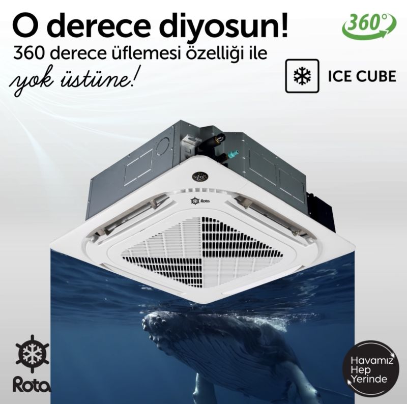 Rota Klima konutlara, villalara ve ticari binalara yönelik çok geniş ürün yelpazesi ile sektöre öncülük yapmaya devam ediyor. Ticari klima ürün grubundaki Rota Ice Cube 4 yön kaset klimalar iş yerleri, villalar, geniş binalar, oteller için enerji tasarruflu iklimlendirme çözümü sunar. Rota kaset tipi klimalar geniş alanlar için tasarlanan özel bir üründür.