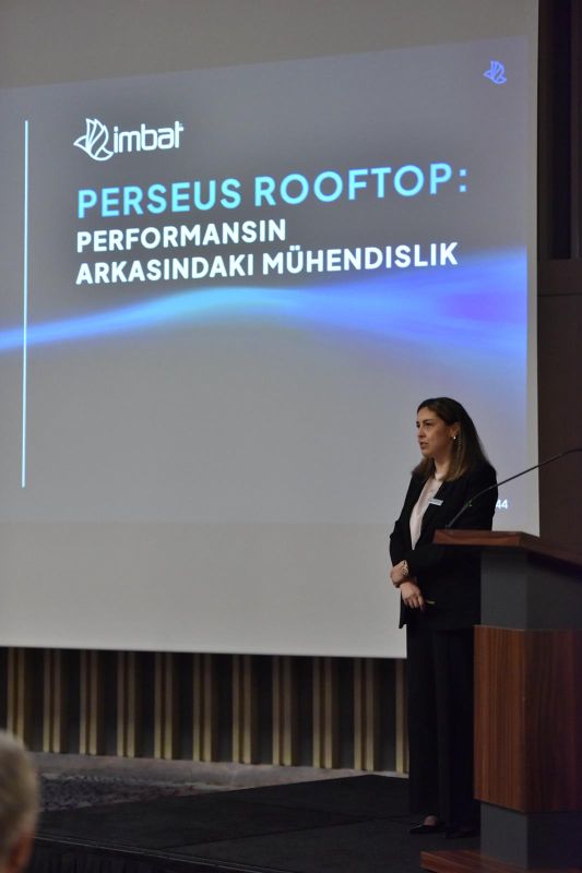 Yurtiçi Satış ve Ürün Geliştirme Direktörü Sedef Mahyacı, Perseus Rooftop serisini bu denli yüksek bir başarı seviyesine ulaştıran mühendislik detaylarını katılımcılara aktardı. Teknik yetkinliğiyle dikkat çeken Perseus serisi; asimetrik kompresör teknolojisi, çift cidar gövde yapısı ve F-Gas uyumu gibi özellikleriyle ticari alanlarda sürdürülebilir konfor standartlarını yeni bir seviyeye taşıyor. Sezonsal enerji verimliliği (SEER) konusunda üstün bir performans sergileyen bu yeni seri, İmbat’ın uzun yıllara dayanan üretim tecrübesini yeni nesil mühendislik yaklaşımıyla bir araya getirerek işletme maliyetlerini minimize eden dayanıklı bir yapı sunuyor. Tasarımdan üretime her aşamasında kusursuzluk hedefiyle geliştirilen cihazlar, bağımsız testlerle onaylanan verileri sayesinde proje süreçlerindeki belirsizlikleri ortadan kaldırıyor.